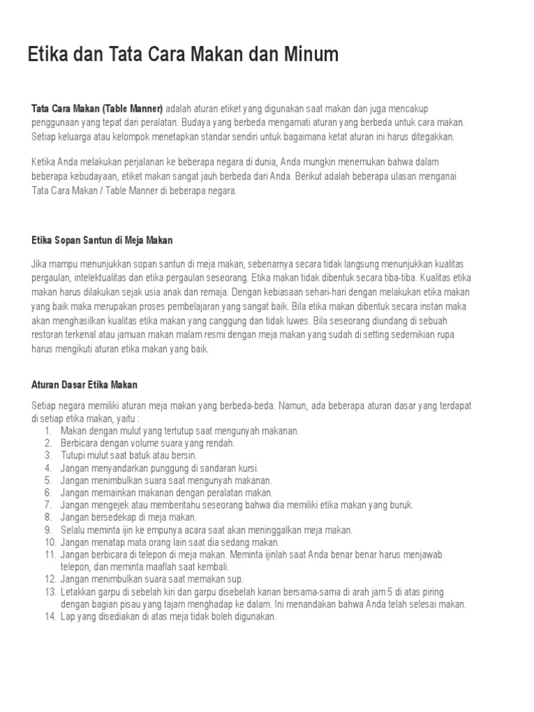 Etika Sopan Santun Di Meja Makan : Check spelling or type a new query.